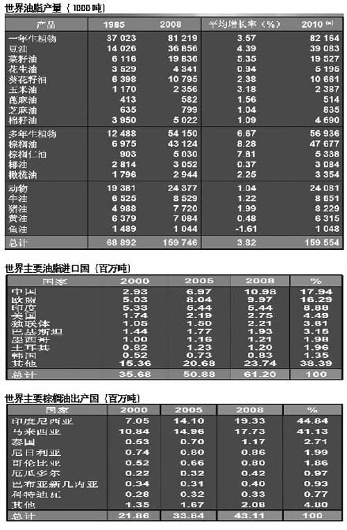 目前世界棕櫚油最大出口國(guó)———馬來(lái)西亞棕櫚油總署(MPOB)經(jīng)濟(jì)與產(chǎn)業(yè)拓展總監(jiān)FaizahMohdShariff博士日前在“第四屆國(guó)際油脂油料大會(huì)”上預(yù)測(cè),2010年,印度尼西亞將超越馬來(lái)西亞成為東南亞地區(qū)第一大棕櫚油出口國(guó),印度尼西亞和馬來(lái)西亞將保持東南亞第一和第二大棕櫚油出產(chǎn)國(guó)的地位直至2015年。東亞地區(qū)國(guó)家人口高速增長(zhǎng)是推動(dòng)棕櫚油產(chǎn)品需求增長(zhǎng)的主要因素,東亞地區(qū)將繼續(xù)成為世界上重要的棕櫚油市場(chǎng)(具體歷史數(shù)據(jù)見(jiàn)下表)。
