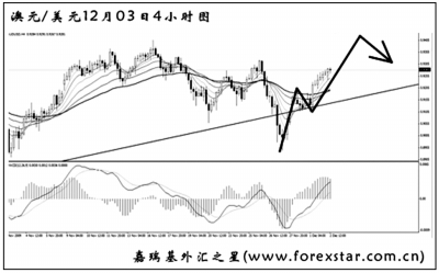 ▲澳元兌美元從10月下旬開始持續(xù)放慢了自己的上漲步伐,雖然日線圖發(fā)生了一連串的M A C