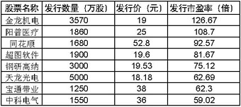 盡管此前普遍預(yù)計,第二批創(chuàng)業(yè)板公司的發(fā)行市盈率可能會高于首批公司。然而,最近公布的第二批創(chuàng)業(yè)板公司的發(fā)行市盈率之高,仍然超出了多數(shù)人士的預(yù)期。 發(fā)行公告顯示,第二批創(chuàng)業(yè)板公司平均市盈率達到83.59倍,遠(yuǎn)遠(yuǎn)高于首批創(chuàng)業(yè)板56.7倍的市盈率。其中,金龍機電以19元的高價發(fā)行,對應(yīng)市盈率高達126.67倍;另一家發(fā)行市盈率過百的公司是陽普醫(yī)療,發(fā)行價是25元,市盈率達到108.7倍。明星公司同花順,其發(fā)行價為52.8元,對應(yīng)市盈率92.57倍;超圖軟件,發(fā)行價19.6元,對應(yīng)市盈率81.67倍;鋼研高納發(fā)行價為19.53元,對應(yīng)市盈率75.12倍。就連發(fā)行市盈率最低的中科電氣,發(fā)行價為36元,市盈率也達到59.02倍。 在創(chuàng)業(yè)板開板以來,盡管監(jiān)管機構(gòu)屢屢進行風(fēng)險提示,并希望新股擴容能有效抑制創(chuàng)業(yè)板二級市場的投機炒作,但由于受創(chuàng)業(yè)板第二批8只新股將以較高市盈率發(fā)行的刺激,15日創(chuàng)業(yè)板收漲0.81%,28只個股中26只飄紅。與此形成鮮明對比的是,滬指當(dāng)天卻下跌了0.86%. 單就數(shù)據(jù)來看,第二批創(chuàng)業(yè)板公司的發(fā)行市盈率大大超出了市場預(yù)期。首批28家創(chuàng)業(yè)板公司發(fā)行時,盡管也被業(yè)內(nèi)認(rèn)為發(fā)行市盈率較高,但其平均發(fā)行市盈率也僅為56.7倍,即便當(dāng)時發(fā)行市盈率最高的鼎漢技術(shù)也僅為82.22倍,低于第二批8家公司的平均水平。統(tǒng)計數(shù)據(jù)顯示,創(chuàng)業(yè)板“滿月”時,28只創(chuàng)業(yè)板股票對應(yīng)的2008年靜態(tài)市盈率為118倍,而截至上周末收盤,這些股票的加權(quán)平均靜態(tài)市盈率為116.23倍。 根據(jù)業(yè)界人士的分析,在創(chuàng)業(yè)板公司高市盈率發(fā)行的背后,是大量機構(gòu)出于各種動機而伸出的瘋狂推手。一位不愿具名的券商公司相關(guān)負(fù)責(zé)人稱:“這些超高市盈率與機構(gòu)投資人的熱情追捧密切相關(guān)!弊鳛樽畲蟮臋C構(gòu)投資群體之一的基金,尤其是今年收益欠佳的債券型基金的積極報價,很可能是第二批公司發(fā)行市盈率創(chuàng)出新高的重要原因。 記者注意到,從網(wǎng)下詢價結(jié)果來看,機構(gòu)最追捧的公司是超圖軟件,該公司的超額認(rèn)購倍數(shù)為156.18倍,陽普醫(yī)療也獲得147.69倍數(shù)。其余如鋼研高納、中科電氣等則有80多倍的認(rèn)購數(shù),同花順認(rèn)購數(shù)為76.43倍,寶通帶業(yè),金龍機電和天龍光電也有60多倍。 如此之高的市盈率之下,多數(shù)公司已經(jīng)透支了未來數(shù)年企業(yè)可預(yù)期的業(yè)績成長性!拔覈袌鲩L期存在的新股不敗現(xiàn)象,上市就會有高溢價,進一步推高了市盈率。在這種情況下,二級市場參與者主要的盈利就只有靠交易來從中賺錢,從而導(dǎo)致了高換手率!碧煜嗤顿Y顧問公司首席策略分析師仇彥英如此分析。