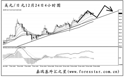 ▲澳元兌美元順利將0.8905的日線圖道氏理論支撐跌破,中線的漲勢(shì)告一段落。短線匯價(jià)將包含MACD底背離點(diǎn)的下降趨勢(shì)線升破,預(yù)計(jì)還將有一定程度的上調(diào)。關(guān)注0.8915一線的阻力,圖中均線系統(tǒng)的壓制位也在于此。澳元在這一帶遇阻回落的希望很大。