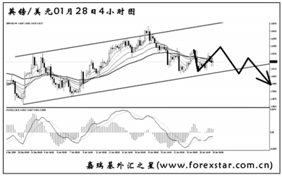 ▲歐元兌美元沿圖中的下降趨勢線完好下挫,主客觀方向均下看。匯價距離下方的強支撐1.3750尚遠,下跌空間較為廣闊。由于小時圖的下跌動能明顯減弱,歐元隨時有向趨勢線發(fā)起回調(diào)的風(fēng)險,做空應(yīng)等待良好的調(diào)整節(jié)奏出現(xiàn)后方可入場。