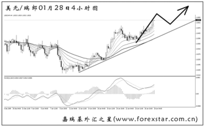 ▲美元兌瑞郎創(chuàng)出了去年12月下旬以來的新高,短線的上漲斜率加大,匯價逐步遠離上升趨勢線。日線圖上看,均線系統(tǒng)已轉(zhuǎn)為向上排列,從此前第一波反彈的幅度測算,美瑞至少還有200多點的上漲空間。短線需警惕匯價向趨勢線一帶回調(diào)的風(fēng)險。