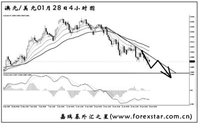 ▲澳元兌美元短線下跌趨勢保持良好。從日線圖上看,高位盤整時間已超過了2個月,匯價有階段性筑頂成功的可能。小時圖出現(xiàn)了持續(xù)的