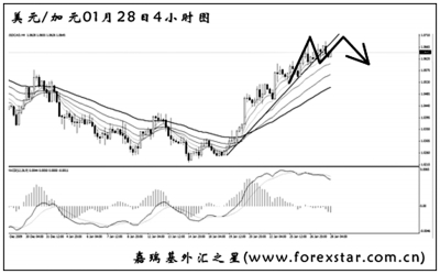 ▲美元兌加元小幅跌破了上升趨勢線,小時圖一連串的MACD頂背離信號發(fā)揮了一定的效果。圖中均線系統(tǒng)仍然完好的向上排列,強支撐在1.0530一線。預(yù)計美加直接上行突破1.0750的概率不大,短線面臨一波下行回調(diào),繼續(xù)做多美加需謹慎。 |