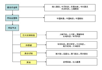 聯(lián)合證券研究員也指出,回顧上世紀(jì)90年代互聯(lián)網(wǎng)發(fā)展的歷程,投資者可以得到的啟示是,物聯(lián)網(wǎng)產(chǎn)業(yè)需要較長的時間才能找到穩(wěn)定和有利可圖的商業(yè)模式,在早期階段基礎(chǔ)設(shè)施提供商面臨最大的機會。 長江證券研究員馬先文認(rèn)為,從物聯(lián)網(wǎng)發(fā)展路徑來看,系統(tǒng)解決方案廠商會率先受益,而單純生產(chǎn)電子標(biāo)簽等存儲體的廠商受益時間相對滯后。 日信證券則表示,行業(yè)發(fā)展的催化劑,來自于政府對物聯(lián)網(wǎng)的產(chǎn)業(yè)政策推動以及運營商物聯(lián)網(wǎng)創(chuàng)新業(yè)務(wù)的推出,投資者需要密切關(guān)注物聯(lián)網(wǎng)領(lǐng)域掌握核心技術(shù)的公司。 物聯(lián)網(wǎng)產(chǎn)業(yè)鏈可以細(xì)分為標(biāo)識、感知、處理和信息傳送四個環(huán)節(jié),每個環(huán)節(jié)的關(guān)鍵技術(shù)分別為電子標(biāo)簽、傳感器、智能芯片和電信運營商的無線傳輸網(wǎng)絡(luò),相關(guān)的上市公司包括遠(yuǎn)望谷、新大陸、漢威電子、東信和平、大唐電信等。 從“物聯(lián)網(wǎng)”的應(yīng)用來看,國信證券認(rèn)為有三個層次:一是傳感網(wǎng)絡(luò),即以二維碼、傳感器為主,實現(xiàn)“物”的識別;二是傳輸網(wǎng)絡(luò),即通過現(xiàn)有的互聯(lián)網(wǎng)、廣電網(wǎng)絡(luò)、通信網(wǎng)絡(luò)或未來的NGN網(wǎng)絡(luò),實現(xiàn)數(shù)據(jù)的傳輸與計算;三是應(yīng)用網(wǎng)絡(luò),即輸入輸出控制終端,可基于現(xiàn)有的手機、PC等終端進行。 國信證券表示,從IT硬件與設(shè)備上市公司來看,能夠在物聯(lián)網(wǎng)主題中受益的領(lǐng)域有:二維碼及RFID(二維碼溯源的新大陸,RFID芯片、電子標(biāo)簽與讀寫器的遠(yuǎn)望谷,上海貝嶺及子公司阿法迪,廈門信達子公司信達匯聰);傳感器(華東科技子公司南京高華科技,MEMS封裝的長電科技);TD-SCDMA芯片與SIM卡(大唐電信、東信和平、SIP封裝的長電科技)。 消息顯示,目前無錫傳感網(wǎng)中心的傳感器產(chǎn)品已在上海浦東國際機場和上海世博會被成功應(yīng)用,首批價值1500萬元的傳感安全防護設(shè)備銷售成功。根據(jù)預(yù)測,到2035年前后,我國的傳感網(wǎng)終端將達到數(shù)千億個;到2050年,傳感器將在生活中無處不在。