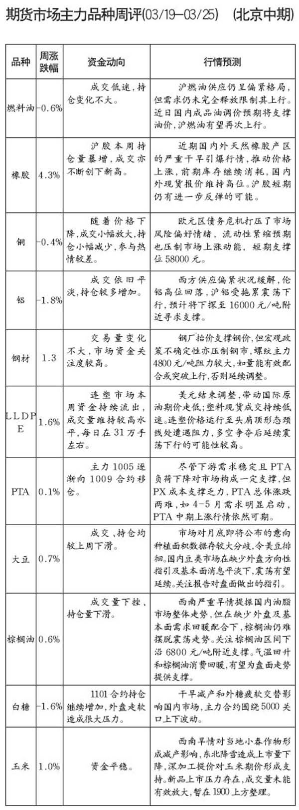 期貨市場主和品種周評[03.19-03.25]