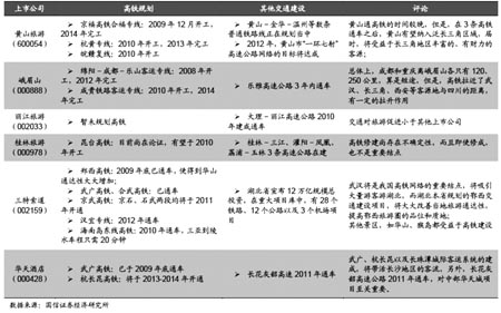 | 主要景區(qū)類上市公司受益交通基建情況 |