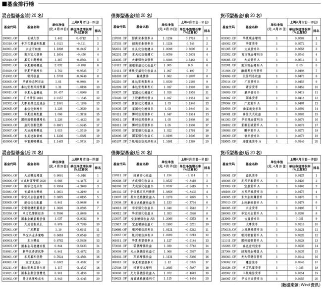 混合型基金排行榜[2010-04-30]