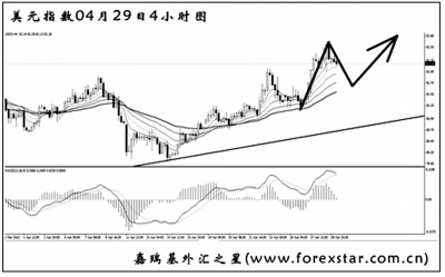 上周五美國證券交易委員會起訴高盛的事件對金融市場造成的進(jìn)一步影響短暫,本周市場再度將焦點(diǎn)放在希臘債務(wù)危機(jī)問題上。與歐洲金融市場愈發(fā)動蕩形成鮮明對比的是,美國經(jīng)濟(jì)復(fù)蘇前景更為樂觀,美元因此有望再創(chuàng)短線新高。 歐盟統(tǒng)計(jì)局上調(diào)希臘預(yù)算缺口以及穆迪下調(diào)希臘主權(quán)債務(wù)評級的消息令希臘金融市場本周再度經(jīng)歷混亂不堪的局面。面對市場擔(dān)憂情緒所造成的借貸成本不斷上升的情形,希臘總理帕潘德里歐正式請求啟動歐盟/國際貨幣基金組織共同救助機(jī)制。接下來,歐盟、國際貨幣基金組織和歐洲央行將會對這一請求進(jìn)行審核,之后待歐元區(qū)其他15個(gè)成員國批準(zhǔn)之后,救助計(jì)劃中由歐元區(qū)承諾的300億歐元救助資金才能開始向希臘提供。此前,歐盟統(tǒng)計(jì)局公布的數(shù)據(jù)顯示,希臘2009年預(yù)算赤字占GDP比例高達(dá)13.6%,這較之前希臘政府預(yù)期的12.7%高出將近1個(gè)百分點(diǎn)。更令投資者感到絕望的是,鑒于一系列原因,歐盟統(tǒng)計(jì)局還表示,對希臘的財(cái)政數(shù)據(jù)的準(zhǔn)確度持保留態(tài)度,不排除進(jìn)一步上修的可能。另外,美國穆迪投資服務(wù)公司也下調(diào)希臘主權(quán)債務(wù)評級,并表示可能會進(jìn)一步下調(diào),原因在于希臘的借款成本可能最終遠(yuǎn)超其之前的預(yù)期。穆迪將希臘主權(quán)債務(wù)的評級從“A2”下調(diào)至“A3”,較投機(jī)或“垃圾”級僅高四個(gè)級距,穆迪還將評級列入負(fù)面觀察名單。不過,市場人士仍對規(guī)模為450億歐元的援助機(jī)制存疑,因這可能無法解決希臘面臨的削減預(yù)算赤字的長期問題。 在歐洲金融市場愈發(fā)動蕩的背景下,美聯(lián)儲在結(jié)束為期兩日的會議后于北京時(shí)間4月29日凌晨宣布維持利率在0至0.25%區(qū)間不變,并再度重申利率將在較長時(shí)間內(nèi)持于異常低位,但對經(jīng)濟(jì)復(fù)蘇和就業(yè)市場的言論更為樂觀。美聯(lián)儲稱,經(jīng)濟(jì)活動持續(xù)增強(qiáng),就業(yè)市場開始改善。銀行借貸繼續(xù)收縮,但金融市場仍支持經(jīng)濟(jì)增長。對就業(yè)市場的描述較3月有所“改觀”,當(dāng)時(shí)美聯(lián)儲只不過表示,就業(yè)市場正在“趨穩(wěn)”,但美聯(lián)儲重申雇主對增加人手仍在猶豫。美聯(lián)儲重申了市場密切留意的利率可能維持異常低點(diǎn)“一段長時(shí)間”的措辭,主因低通脹和高失業(yè)率。美聯(lián)儲重申在一段時(shí)間內(nèi)通脹將可能保持溫和,因大量的資源閑置令成本壓力受限。美聯(lián)儲聯(lián)邦公開市場委員會以9:1的投票通過利率決定,堪薩斯城聯(lián)儲主席霍恩連續(xù)第三次在會議上持反對意見,他稱在較長時(shí)間內(nèi)保持利率在異常低水平的承諾不再合理,認(rèn)為這可能“造成未來的失衡”,在一段時(shí)間內(nèi)保持低利率的承諾限制了美聯(lián)儲開始小幅升息的靈活性。美聯(lián)儲重申,委員會將密切關(guān)注經(jīng)濟(jì)前景,在必要時(shí)利用政策工具促進(jìn)復(fù)蘇和價(jià)格穩(wěn)定。美聯(lián)儲稱,鑒于金融市場的功能性改善,除定期資產(chǎn)支持證券貸款工具以外已結(jié)束所有特殊流動性工具。 美元指數(shù)繼續(xù)沿日線圖的上升通道運(yùn)行,目前中線道氏理論的最后一個(gè)顯著低點(diǎn)在80.00,此位置為美元指數(shù)上漲過程中的強(qiáng)支撐。MACD發(fā)出了大角度的頂背離信號,預(yù)示多頭動能有所減弱。美元指數(shù)有向下回探通道下沿的風(fēng)險(xiǎn),但跌破的概率不大,后市再創(chuàng)新高為大概率事件。