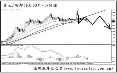 ▲美元兌瑞郎在小幅創(chuàng)出新高之后急速下跌,圖中發(fā)出了角度明顯的MACD頂背離信號(hào)。最近一周多以來(lái),匯價(jià)的震蕩節(jié)奏明顯,對(duì)交易的影響較大。雖然中線上的漲勢(shì)沒(méi)有任何改變,但短線繼續(xù)沖高的動(dòng)能已顯不足,預(yù)計(jì)下周將是一個(gè)逐步下跌調(diào)整的走勢(shì)。