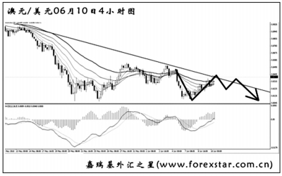 ▲澳元兌美元最近的一波下跌未能跌破前方低點(diǎn)的支撐0.8070,短線再度向上反彈,F(xiàn)匯價已經(jīng)接近了圖中下降趨勢線的阻力位0.8365,能否順利升破成為后市反彈的關(guān)鍵。日線圖上看,澳元的跌勢無任何改變,關(guān)注震蕩區(qū)間上沿0.8550的阻力,澳元在此一代遇阻的概率較大。