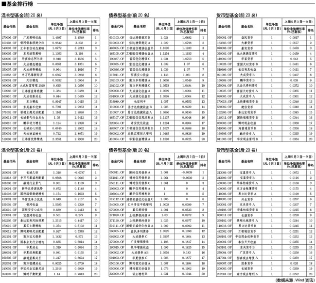 混合型基金排行榜[2010-06-11]