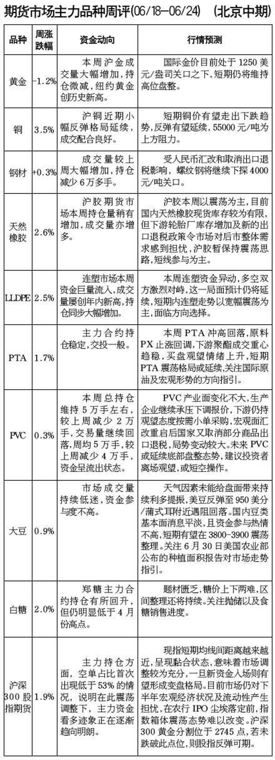 期貨市場(chǎng)主力品種周評(píng)[6.18-6.24]