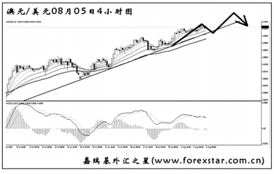 ▲澳元兌美元的漲勢(shì)延續(xù),趨勢(shì)線和均線系統(tǒng)的依托作用良好。圖中的MACD發(fā)生了數(shù)次的頂背離信號(hào),但在趨勢(shì)線被跌破前,需繼續(xù)保持看漲澳元的思路。短線匯價(jià)有向趨勢(shì)線發(fā)起回調(diào)的欲望,隨即遭遇支撐繼續(xù)創(chuàng)新高的希望很大。預(yù)計(jì)下周澳元將是一個(gè)沖高回落的運(yùn)行節(jié)奏。