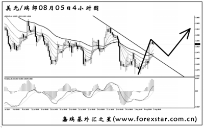 ▲美元兌瑞郎將包含MACD底背離點(diǎn)的上升趨勢(shì)線強(qiáng)力升破,預(yù)示匯價(jià)將有一波明顯的反彈行情。大級(jí)別道氏理論顯著高點(diǎn)阻力在1.0640,這是美元兌瑞郎這波挑戰(zhàn)的首要目標(biāo)。短線如果出現(xiàn)清晰的主次節(jié)奏或中繼形態(tài),可以小倉(cāng)做多,等上述阻力突破后再逐漸加大倉(cāng)位。