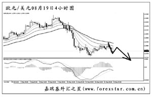 ▲歐元兌美元這波下行尚未能跌破日線圖道氏理論顯著低點的支撐1.2730,短線匯價反彈回調(diào),圖中均線系統(tǒng)的壓制作用完好。目前歐元下跌的主次節(jié)奏清晰,除非匯價能夠再度升破本周高點1.2920一線,否則后市歐元再創(chuàng)新低的概率很大,繼續(xù)尋找做空機會。 |