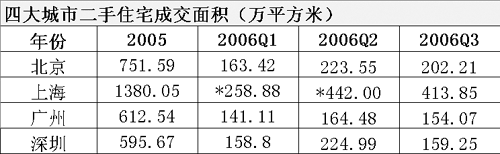 四大城市二手住宅成交面積