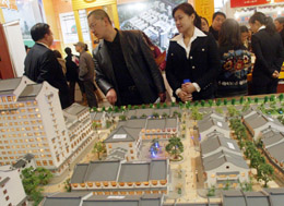 3月16日,上海市民在房展會(huì)上觀看樓盤模型。當(dāng)日,上海2007年首場(chǎng)大型房展會(huì)——第九屆上海之春房產(chǎn)展示交易會(huì)在展覽中心開幕,近百家參展商參加。相比以往歷屆,本屆房產(chǎn)會(huì)開幕首日觀眾數(shù)量有所減少,參展商也比2006年有所減少。新華社發(fā) |