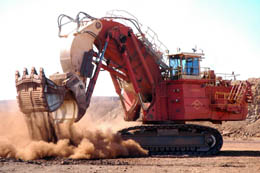 2005年10月18日,在西澳大利亞州首府珀斯,中國中鋼集團與澳大利亞中西部鐵礦公司簽署了一項總額15億澳元的鐵礦開發(fā)協(xié)議。圖為10月17日在中鋼集團與澳方合資的恰那鐵礦(西澳大利亞州)新礦點拍攝的進行采前平整作業(yè)的電鏟車。(本報資料照片) |