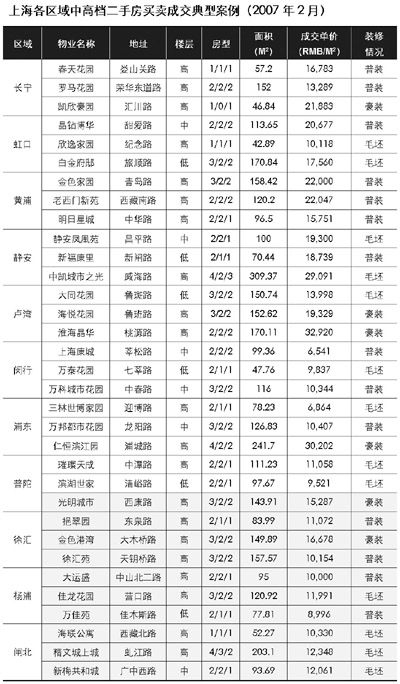 上海各區(qū)域中高檔二手房買(mǎi)賣(mài)成交典型案例