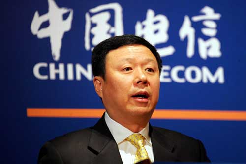 3月26日,中國電信董事長兼首席執(zhí)行官王曉初在新聞發(fā)布會(huì)上。當(dāng)日,中國電信股份有限公司在香港公布2006年業(yè)績,純利為221.71億元人民幣,增長4.9%。