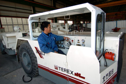 近日,中國(guó)兵器工業(yè)集團(tuán)公司所屬北方股份公司成功研制出WC5EJ井下無(wú)軌膠輪防爆工程自卸車(chē)。該車(chē)載重5噸,具有轉(zhuǎn)彎半徑小等優(yōu)點(diǎn),是一種適用于現(xiàn)代化煤礦輔助運(yùn)輸?shù)母咝阅苘?chē)輛。圖為一名工人在廠(chǎng)區(qū)對(duì)井下無(wú)軌膠輪防爆工程自卸車(chē)進(jìn)行試操作。 |