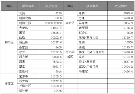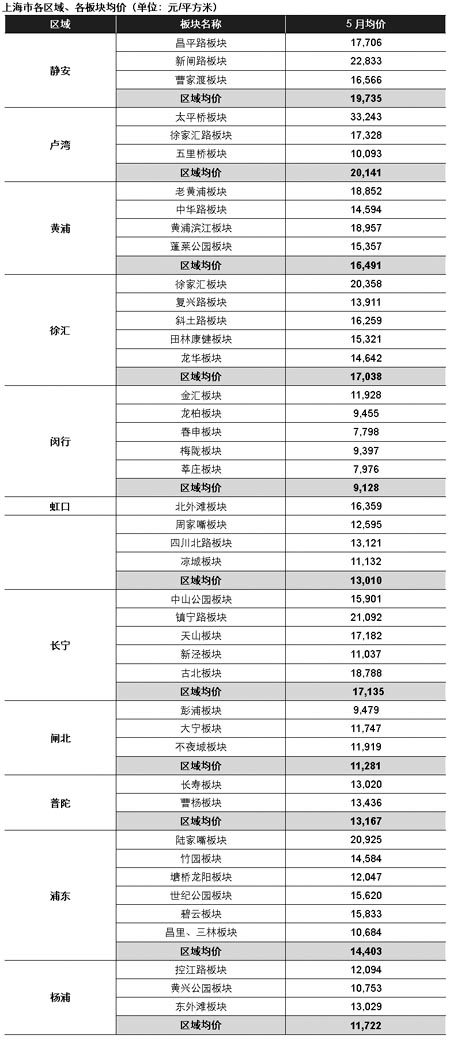 上海市各區(qū)域、各板塊均價(單位:元/平方米)