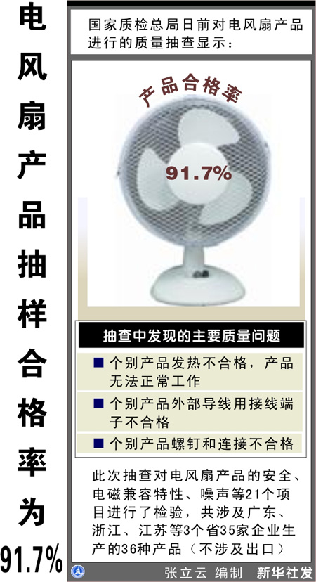 我國電風扇產(chǎn)品抽樣合格率為91.7%[圖]