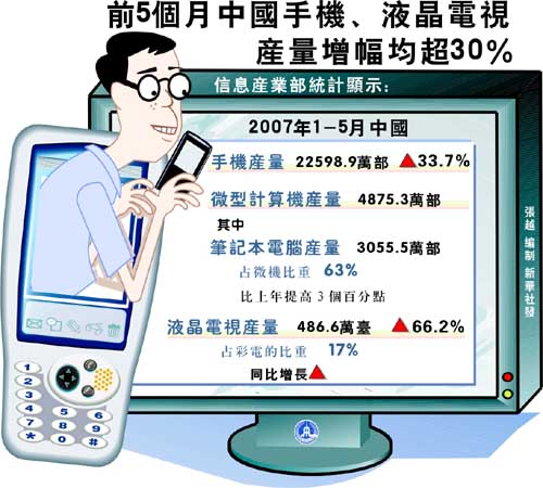 前5月中國(guó)手機(jī)、液晶電視產(chǎn)量增幅均超30%