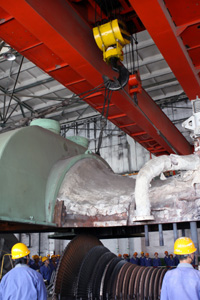 日前,國電石嘴山第一發(fā)電有限公司的3#行車正在將小火電的汽缸緩緩吊起。當天,寧夏回族自治區(qū)在石嘴山市正式關(guān)停了運行20多年的4臺共計15萬千瓦小火電發(fā)電機組。截至目前,寧夏已經(jīng)關(guān)停20萬千瓦小型火電機組!笆晃濉逼陂g,寧夏計劃關(guān)停74萬千瓦的小型火電機組。