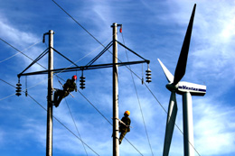 除了在火力發(fā)電方面做好節(jié)能減排,大唐集團(tuán)公司還大力進(jìn)軍被稱為“綠色能源”的風(fēng)電領(lǐng)域。 赤峰風(fēng)電項(xiàng)目可以被認(rèn)為是大唐集團(tuán)公司進(jìn)軍風(fēng)電領(lǐng)域的第一個(gè)項(xiàng)目。2005年8月,矗立在賽罕壩的第一臺(tái)風(fēng)機(jī)并網(wǎng)發(fā)電,結(jié)束了大唐沒有風(fēng)電的歷史。據(jù)悉,這一風(fēng)電項(xiàng)目一期工程建設(shè)規(guī)模30兆瓦,安裝36臺(tái)單機(jī)容量850千瓦的變槳距調(diào)節(jié)風(fēng)力發(fā)電機(jī)組,同時(shí)建設(shè)120公里220千伏輸電線路,項(xiàng)目總投資4.1億元,負(fù)荷通過烏丹一次變送入東北電網(wǎng)。 “賽罕壩風(fēng)電場(chǎng)裝機(jī)容量在2006年已達(dá)17萬千瓦,成為目前全國最大的風(fēng)電場(chǎng)!背喾屣L(fēng)電公司總經(jīng)理胡永生向記者介紹,今年赤峰風(fēng)電公司將新建七個(gè)項(xiàng)目,總裝機(jī)容量330兆瓦,安裝來自國內(nèi)外三個(gè)設(shè)備廠家、三種型號(hào)總計(jì)268臺(tái)風(fēng)力發(fā)電機(jī)組。此外,還將新建三座變電站、擴(kuò)建一座變電站,建設(shè)220千伏、110千伏、35千伏線路共計(jì)200公里,負(fù)荷接入東北、華北、蒙西三個(gè)電網(wǎng)。 “風(fēng)力發(fā)電是綠色高效的能源利用,賽罕壩巨大的臺(tái)型地貌為建設(shè)大型風(fēng)力發(fā)電場(chǎng)提供了得天獨(dú)厚的條件。這里年有效風(fēng)速時(shí)數(shù)近8000小時(shí),具有較好開發(fā)利用前景,也是大唐集團(tuán)公司進(jìn)軍風(fēng)電市場(chǎng)的一柄利刃。”胡永生這樣告訴記者。