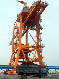 2006年6月建成投產(chǎn)的廣西欽州市欽州港區(qū)7萬噸煤炭專業(yè)碼頭,現(xiàn)正式對外營業(yè)。項(xiàng)目建成7萬噸泊位和2000噸級泊位各一個(gè),總投資6億元,年吞吐能力400萬噸。圖為天盛7萬噸煤炭專業(yè)碼頭的主吊塔。