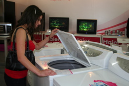由中國國際貿(mào)易促進委員會主辦的首屆哥斯達黎加中國商品展覽會日前在圣何塞國際會議中心舉行。為期四天的展覽吸引了2.5萬參觀者,交易額1600萬美元。在該展覽會上,海爾洗衣機受到了參觀者的青睞。圖為一名哥斯達黎加女孩對海爾洗衣機產(chǎn)生了興趣。