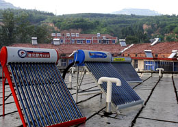 近年來,河南盧氏縣城城關(guān)鎮(zhèn)居民屋頂上雜亂的電視天線被一排排高科技太陽能熱水器取而代之。 程專藝