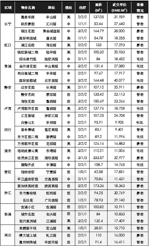 上海市各區(qū)域中高檔二手房買賣成交典型案例