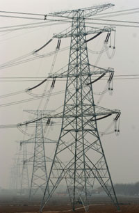 山西境內(nèi)最大的一座500千伏變電站長治久安500千伏變電站輸電線路。 (本報資料照片) | 一條1000千伏的特高壓輸電線路能夠輸送600萬千瓦的電力,相當于就地消化1800萬噸的煤炭;在輸送相同功率的情況下,1000千伏線路可將最遠送電距離延長3倍,而損耗只有500千伏線路的1/3左右,還可節(jié)省60%的土地資源。然而,這卻是世界電網(wǎng)建設(shè)史上的一次新的嘗試。