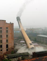 日前,南昌發(fā)電廠一座80多米高的小機組煙囪在巨響中轟然倒下,這是江西省實施電力“上大壓小”的第一爆。
