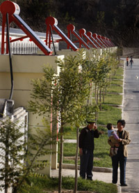 延安市李渠鎮(zhèn)張新莊家家戶戶裝上了太陽能熱水器。(本報資料照片) | “我們把最貴的電送到了中國最貧窮的地方。”聯(lián)合國開發(fā)計劃署國際顧問查理·竇在日前召開的中國農(nóng)村能源發(fā)展國際研討會上,圖文并茂地向與會者展示了中國農(nóng)村風(fēng)能、太陽能等新能源發(fā)展的方向和問題,查理·竇的發(fā)言和在場其他國內(nèi)外專業(yè)人士的討論有著一個共同的主題,那就是我國農(nóng)村新能源正在破冰前行。