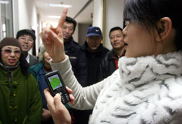 日前,沈陽(yáng)市殘疾人服務(wù)熱線為聾人開通求助、咨詢等手機(jī)短信服務(wù)。聾人用戶只需向服務(wù)中心發(fā)送指定短信號(hào)碼,就會(huì)得到所需要的法律、低保等方面的信息幫助。圖為沈陽(yáng)殘疾人服務(wù)熱線的工作人員為聾人講解短信服務(wù)相關(guān)知識(shí)。 |
