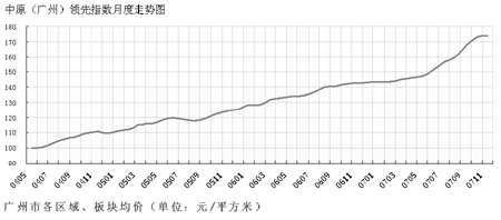 2007年11月,中原(廣州)領(lǐng)先指數(shù)為173.7,比上月增加1個(gè)百分點(diǎn),環(huán)比上漲0.6%。中原領(lǐng)先指數(shù)在本月結(jié)束了自今年6月份以來的快速增長(zhǎng),開始以較為穩(wěn)健的步伐小幅向上攀升。即便如此,指數(shù)漲幅與去年同期相比,仍然高出了0.2%。受到樓市觀望情緒持續(xù)、一手樓盤紛紛降價(jià)促銷的影響,二手市場(chǎng)的成交速度有所放緩、成交量明顯下降、業(yè)主放盤更加理智是指數(shù)漲幅回歸穩(wěn)健的主要因素之一。部分業(yè)主受到股市下挫、年底資金周轉(zhuǎn)等因素影響,心態(tài)開始軟化,放盤價(jià)更貼近市場(chǎng)、更趨向合理,少數(shù)業(yè)主更是主動(dòng)承擔(dān)交易稅費(fèi),一時(shí)間筍盤大量涌現(xiàn),不少買家則看準(zhǔn)了時(shí)機(jī)、趁低吸納。