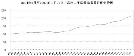 據(jù)北京中原三級(jí)市場部研究中心對(duì)監(jiān)測樓盤統(tǒng)計(jì),2007年11月北京中高檔二手房成交價(jià)格為12973.9元/平方米,11月二手房買賣領(lǐng)先指數(shù)為215點(diǎn),環(huán)比10月上漲3.77%。而10月環(huán)比9月價(jià)格增幅為3.8%。可見,11月中高檔二手房價(jià)格增幅同10月份價(jià)格增幅相比有所趨緩。但從11月成交量上來看,環(huán)比10月卻有所下降,降幅達(dá)9%左右。