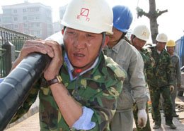 福建龍海市投資500多萬(wàn)元,建設(shè)人民中路地下電纜工程。春節(jié)在即,電力工程隊(duì)加班加點(diǎn)奮戰(zhàn)施工,力爭(zhēng)早日完工。圖為供電公司電力工程隊(duì)正在人民東路鋪設(shè)電纜。