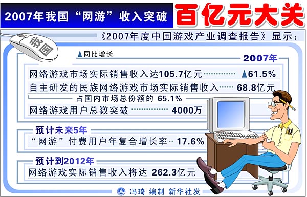 2007年我國“網(wǎng)游”收入突破百億元大關(guān)