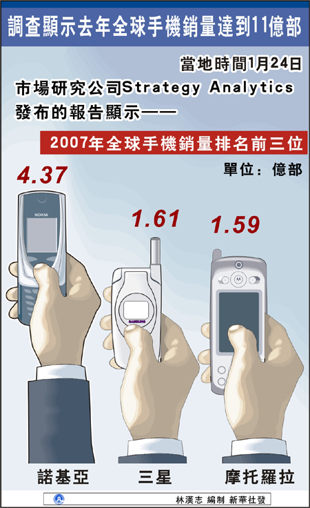 調(diào)查顯示去年全球手機(jī)銷量達(dá)到11億部[圖]