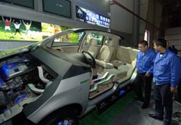 長安杰勛HEV汽車是國家863計劃“電動汽車重大項目”的主要組成部分,在國家科技部、重慶市政府等各方的大力支持下,經(jīng)過長達六年的艱苦攻關(guān),杰勛HEV汽車研發(fā)成功,并且成為具有世界先進水平的量產(chǎn)車型。圖為兩名長安汽車集團的工人站在混合動力轎車長安長安杰勛HEV旁觀看該車工作原理。新華社記者:劉潺