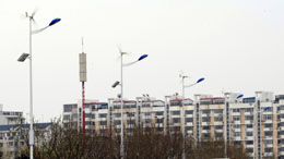 一種風(fēng)能與太陽能相結(jié)合的新型路燈日前在天津市南開區(qū)梅苑路試運(yùn)行。據(jù)悉,每盞路燈都橫扛著一個小風(fēng)車,攔腰還托舉著一塊太陽能電路板,白天小風(fēng)車和太陽能電路板將風(fēng)能和光能轉(zhuǎn)化成電能,儲存到埋在地下的蓄電池里,夜間自動給路燈供電,節(jié)能又環(huán)保。