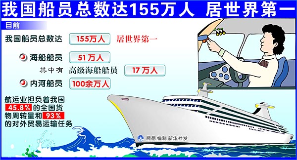 我國(guó)船員總數(shù)達(dá)155萬(wàn)人 居世界第一[圖表]