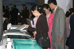 日前,第11屆平壤春季國(guó)際商品展覽會(huì)在平壤三大革命展覽館舉行。來自17個(gè)國(guó)家和地區(qū)的220多家企業(yè)參展,其中中國(guó)企業(yè)占一半以上,達(dá)到125家。展出的商品包括電機(jī)設(shè)備、家電產(chǎn)品、化工產(chǎn)品、日用品等。圖為平壤觀眾仔細(xì)觀看海爾集團(tuán)展出的洗衣機(jī)。 |