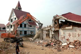 北海市一直是全國(guó)房地產(chǎn)熱點(diǎn)城市。上個(gè)世紀(jì)九十年代初的“房地產(chǎn)熱”曾震動(dòng)全國(guó),在宏觀調(diào)控后遺留了大量“爛尾樓”。房地產(chǎn)會(huì)不會(huì)再度成為北海市的“滑鐵盧”,備受關(guān)注。圖為2006年底拆除爛尾別墅時(shí)的情景。 | 今年3月份起,廣西北海市住房交易量與價(jià)格急劇飆升,交易面積比2月份增長(zhǎng)336.9%,價(jià)格上漲3.9%。幾乎與去年同期,北海市房?jī)r(jià)再次出現(xiàn)大幅上漲。在宏觀調(diào)控效果日益顯現(xiàn),深圳、北京等城市樓市人氣轉(zhuǎn)淡、觀望情緒加重之時(shí),北海市這種“逆市上揚(yáng)”隱藏何種“玄機(jī)”?