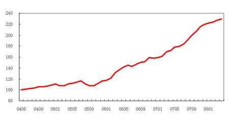 2008年4月,中原(北京)領先指數(shù)為229點,環(huán)比上漲1.11%。據(jù)北京中原三級市場研究部對監(jiān)測樓盤統(tǒng)計可知,4月份北京中高檔二手房成交價格為13844.27元/平方米。同時,北京中高檔二手房買賣成交量環(huán)比3月份有5.65%的小幅回落。由此可見,北京中高檔二手商品房市場在4月份呈現(xiàn)出量降價升的態(tài)勢。
